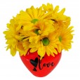 Arranjo Coração Vermelho com Margaridas Amarelas e Lindt Milk
